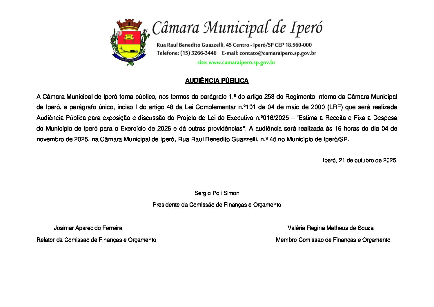 Sessões ao vivo, diretamente da Câmara Municipal de Iperó.