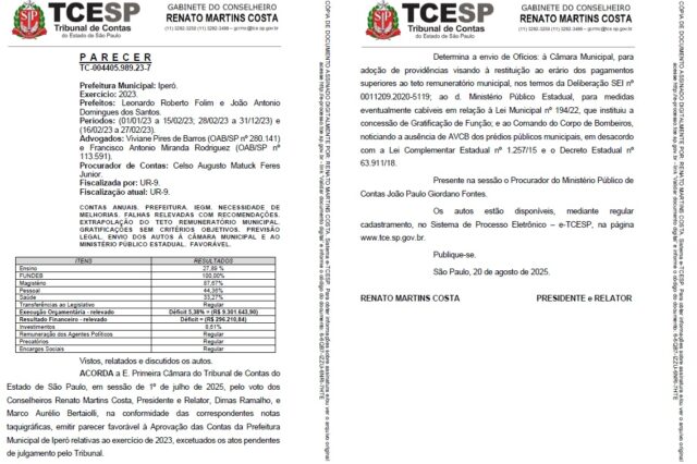 PARECER PRÉVIO ÀS CONTAS DO EXECUTIVO – 2023.