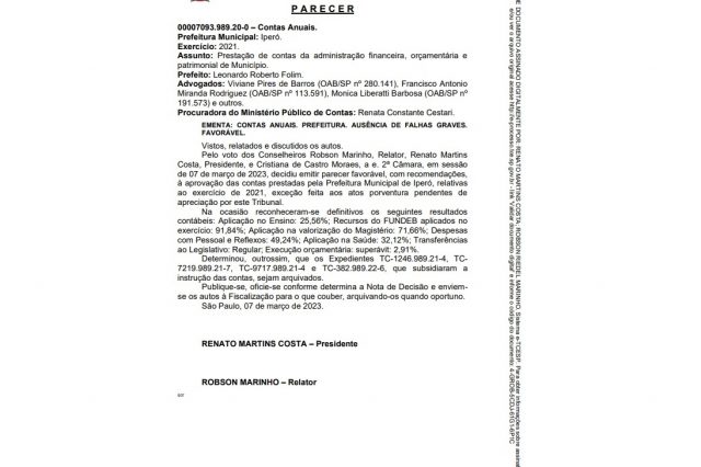 Prestação de Contas da Administração Financeira, Orçamentária e Patrimonial de Município