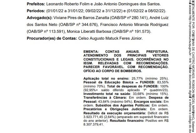 Parecer das Contas do Executivo - Exercício 2022
