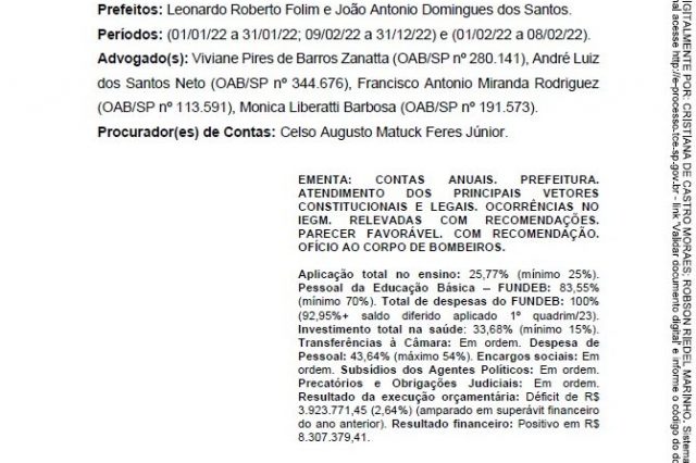 Prestação de Contas da Administração Financeira, Orçamentária e Patrimonial de Município - Exercício 2022