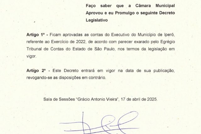 Câmara Municipal de Iperó Em cumprimento ao disposto no artigo 280, III do Regimento Interno da Câmara Municipal de Iperó